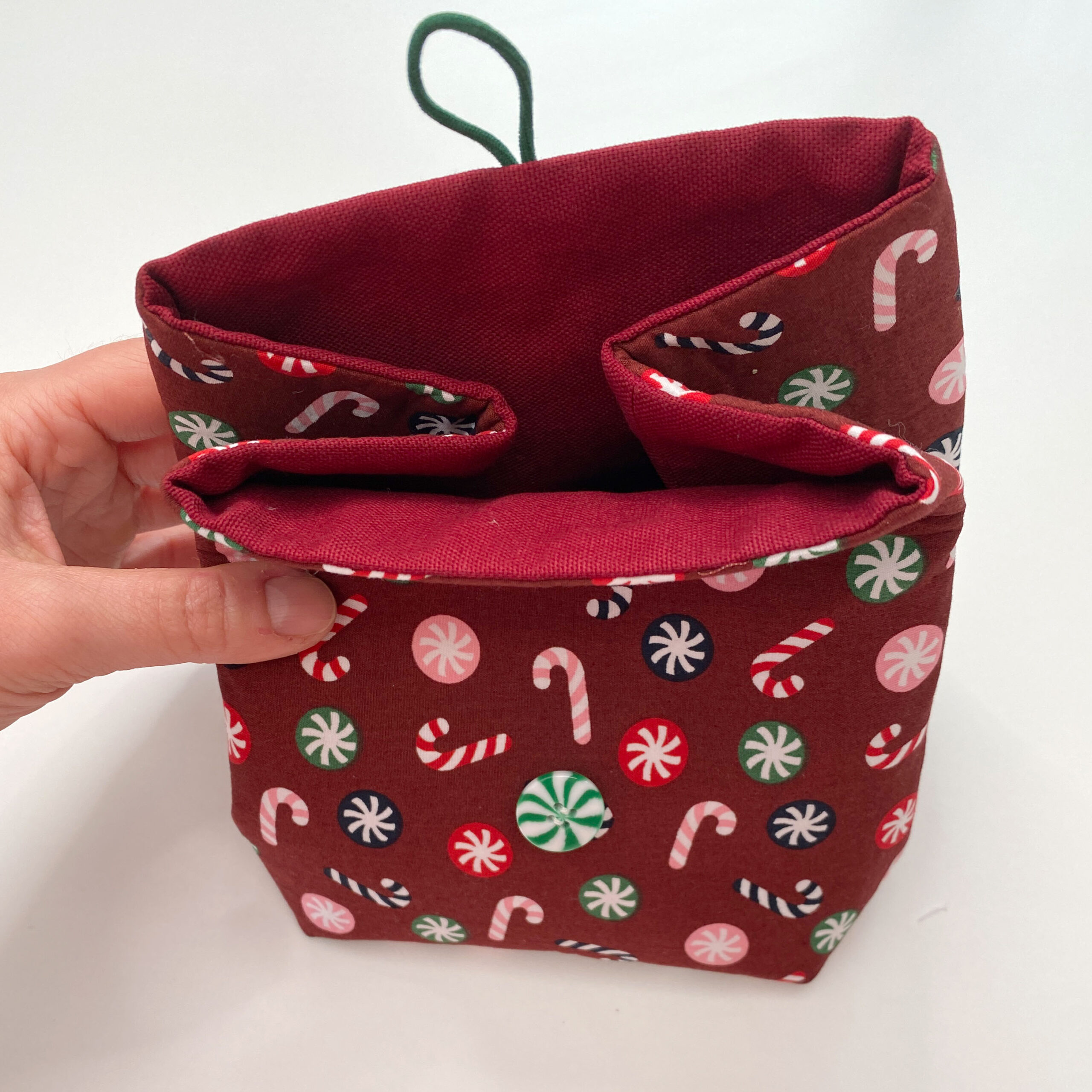 In der Grundversion entsteht ein klassisches Utensilo, das sich wunderbar als weihnachtliches Geschenkkörbchen eignet – ideal für selbstgemachte Kleinigkeiten, Plätzchen, Wellness-Sets oder kleine Überraschungen.